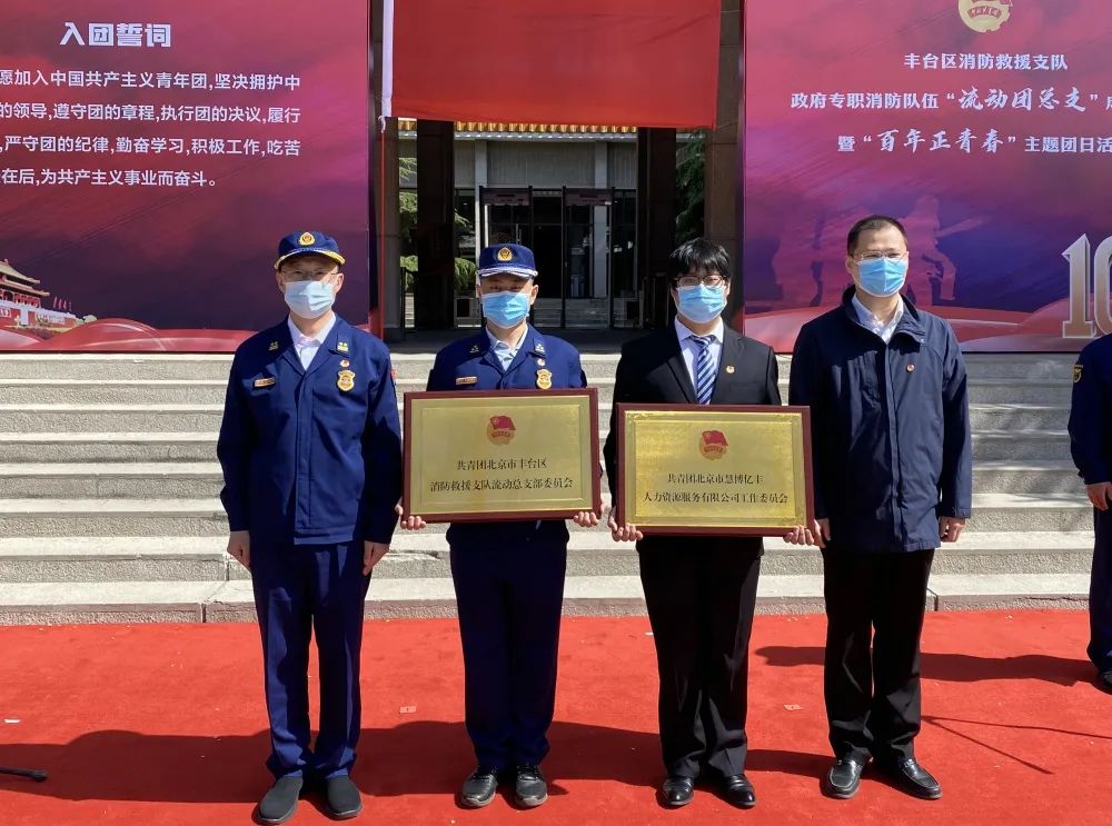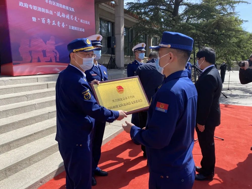 仪式上宣布了丰台区消防救援支队流动团总支成立,并分别向“北京慧博亿丰人力资源服务有限公司团工委”和“丰台区消防救援支队流动团总支”授牌,标志着人力资源公司团工委、消防救援支队流动团总支、基层队站流动团支部三级团组织架构建立完成。