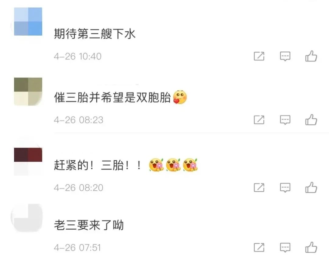 网友:赶紧的,三胎!