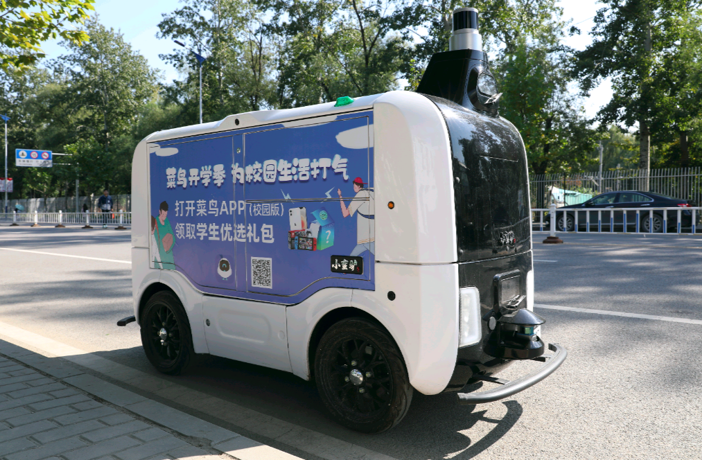 无人车在北京校园里执行包裹无接触配送任务