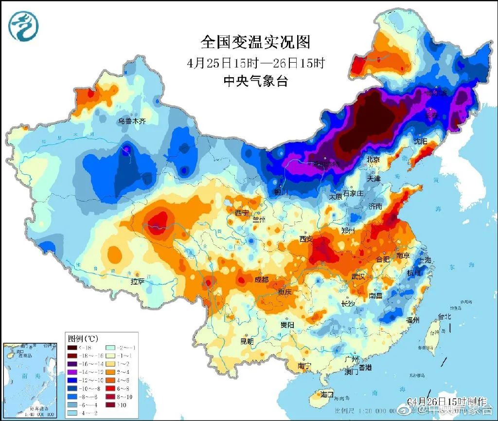相比昨天同时次降温幅度超过20℃