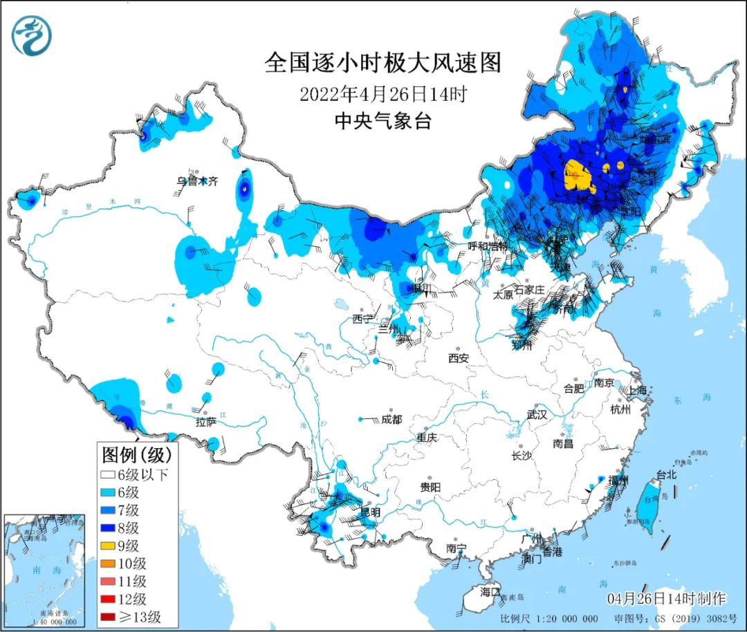 瞬时风速达到了10级(26.5米/秒)