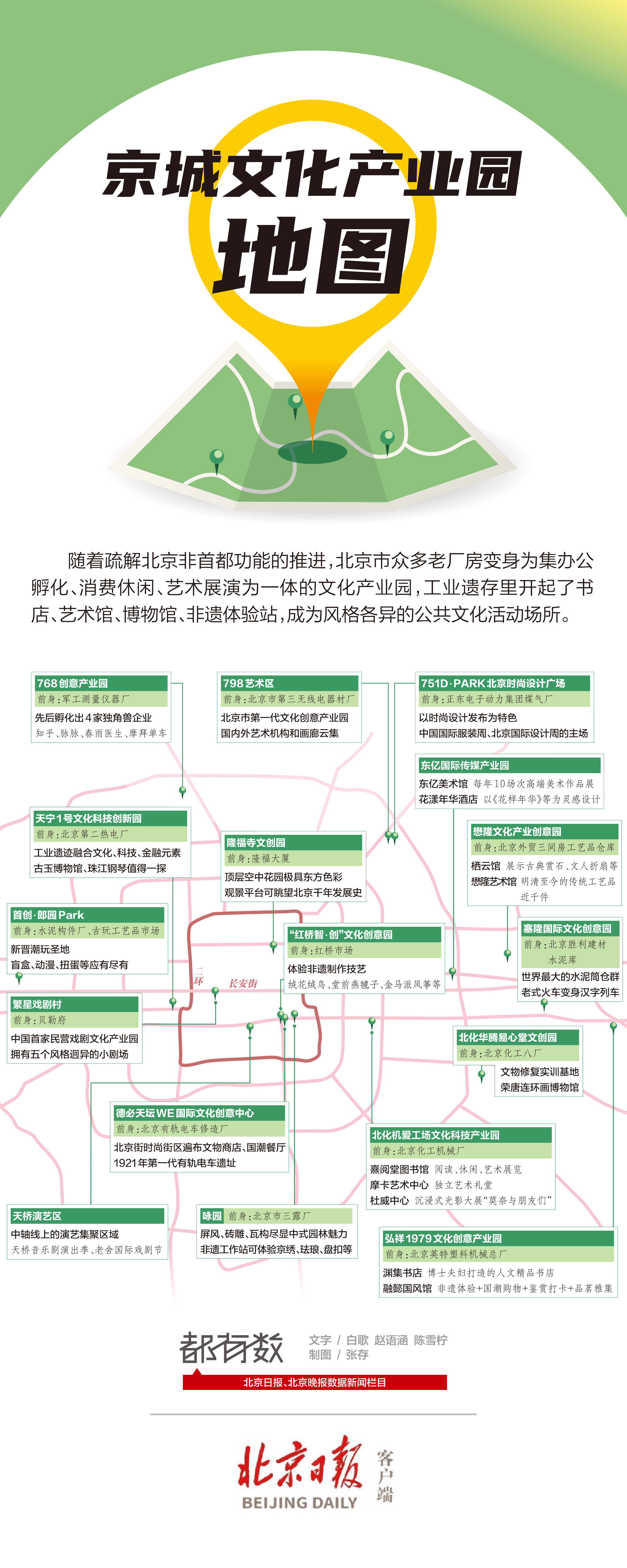 随着疏解北京非首都功能的推进,北京市众多老厂房变身为集办公孵化、消费休闲、艺术展演为一体的文化产业园,工业遗存里开起了书店、艺术馆、博物馆、非遗体验站,成为风格各异的公共文化活动场所。