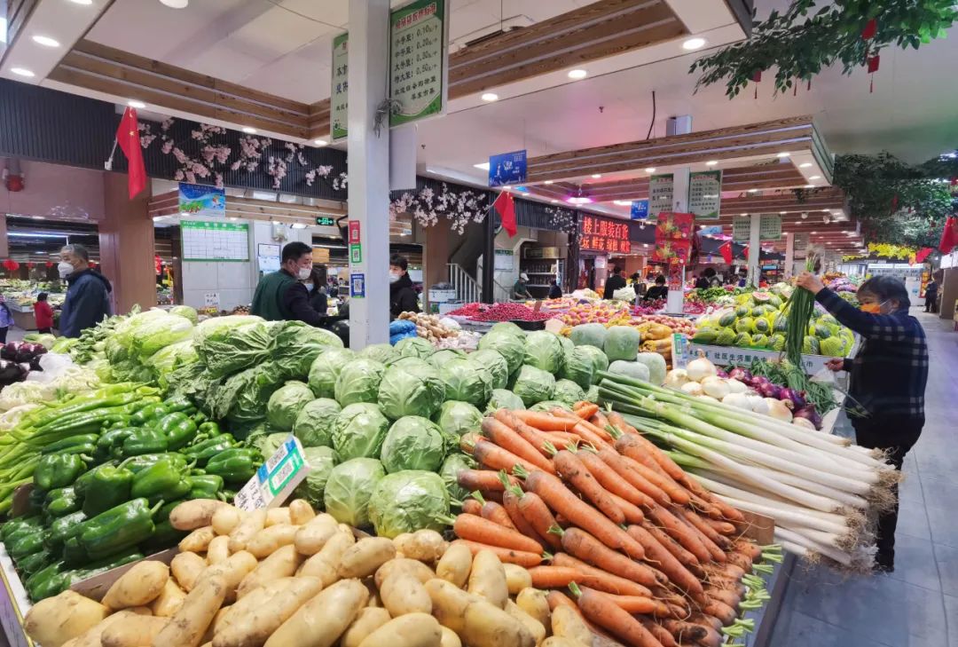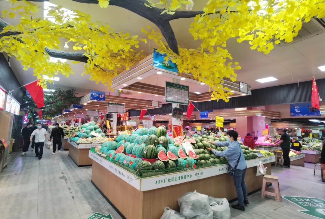 ▲苹东集市内果蔬、肉类、粮油等物资供应充足,市场秩序良好,市民日常生活基本不受影响。
