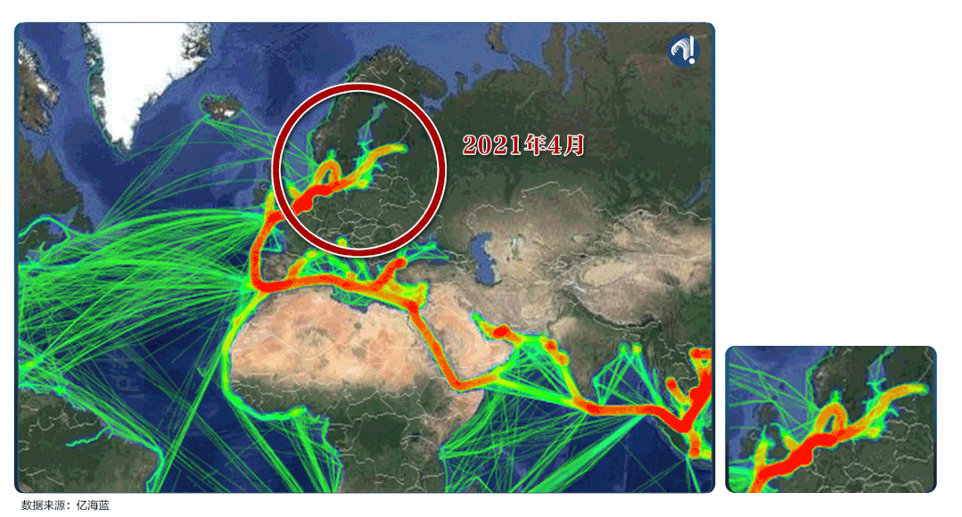 看欧洲地区,线更密了,这也意味着,今年的运输量要大于去年。聚焦波罗的海,这种变化更为明显。