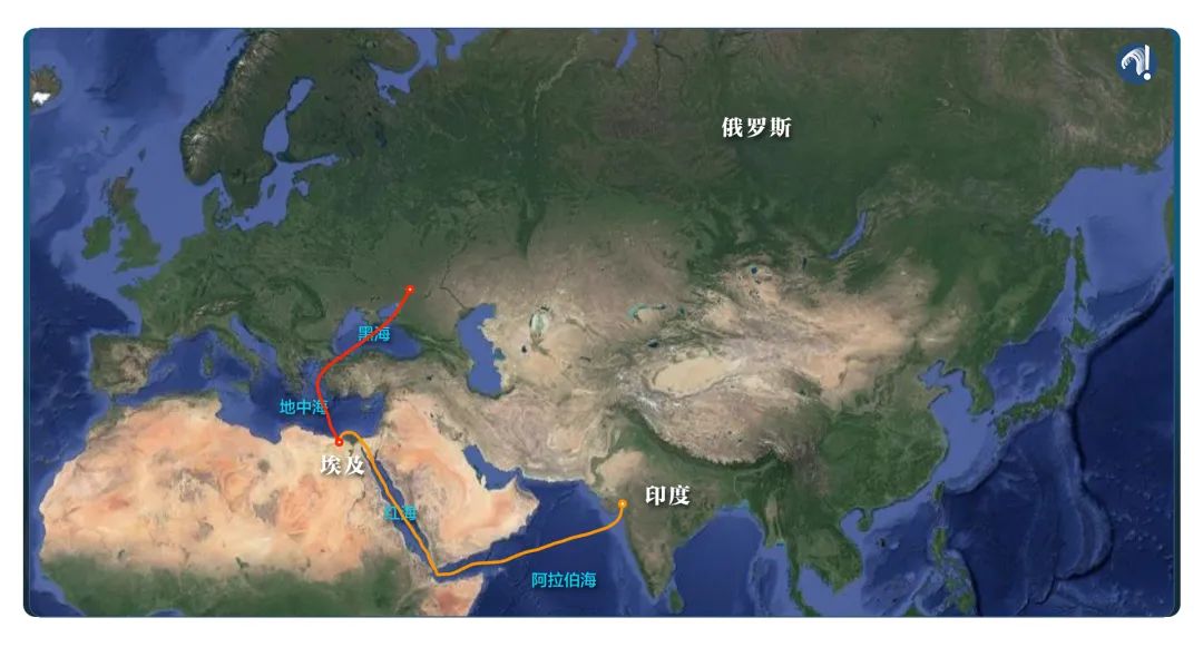 从地图上看,最直观的就是航运距离。根据印度贸易商自己的数据,来自黑海地区的小麦,运到埃及,费用是每吨30至40美元,但是如果是从印度进口,每吨的费用就要上涨一倍,大约是70美元。