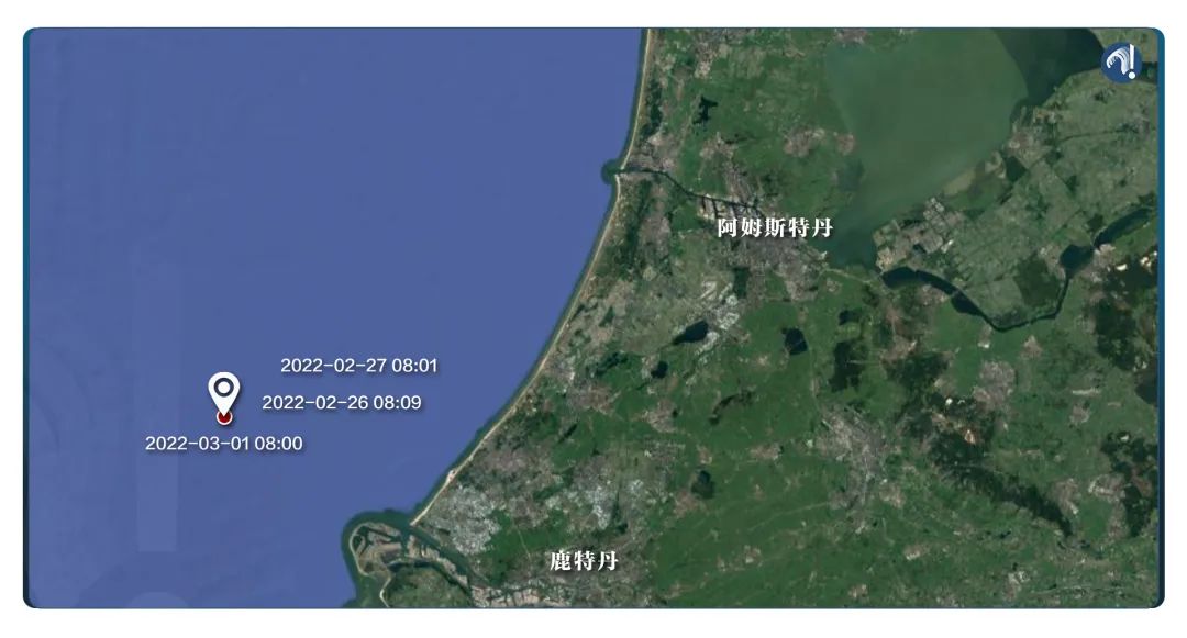 2月26日、2月27日,直到3月1日,它都一直停泊在鹿特丹港外,航路没有发生变动。