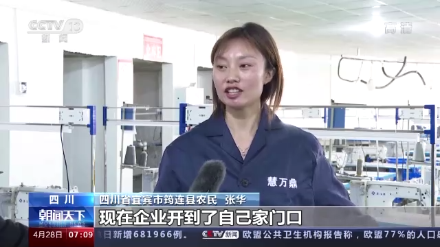四川省宜宾市筠连县农民 张华:现在企业开到了家门口,我现在也是这个厂里的质检员,最低工资每月能拿3000元,最高能拿4000元,最主要的是我能照顾小孩。