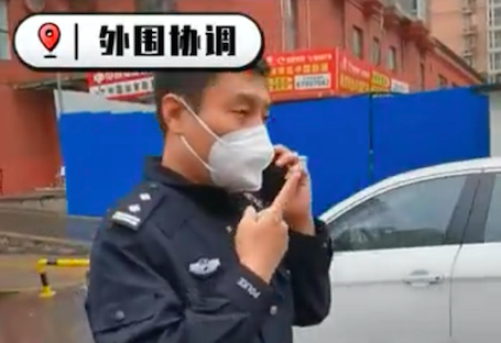问清陈女士的住址后,正在封控区外围值守的副所长王超穿上防护服火速赶至陈女士所在小区。同时,派出所与疾控、街乡等部门对接,说明了情况,为陈女士就医事宜进行协调。