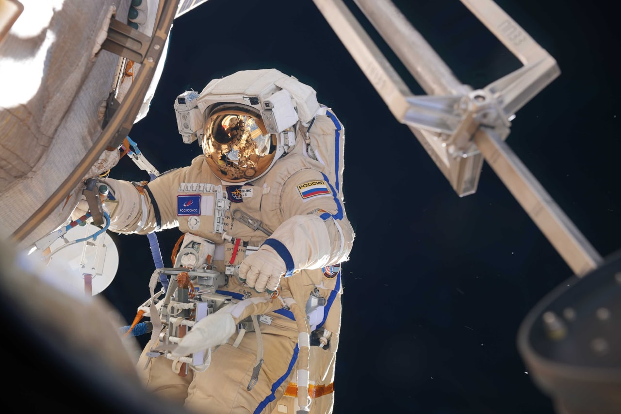 据俄罗斯国家航天集团发布的消息,莫斯科时间29日凌晨1:42,俄罗斯宇航员奥列格·阿尔捷米耶夫和丹尼斯·马特维耶夫顺利完成了超过7个小时的太空行走,完成了真空隔热罩拆除和扶手安装等任务。