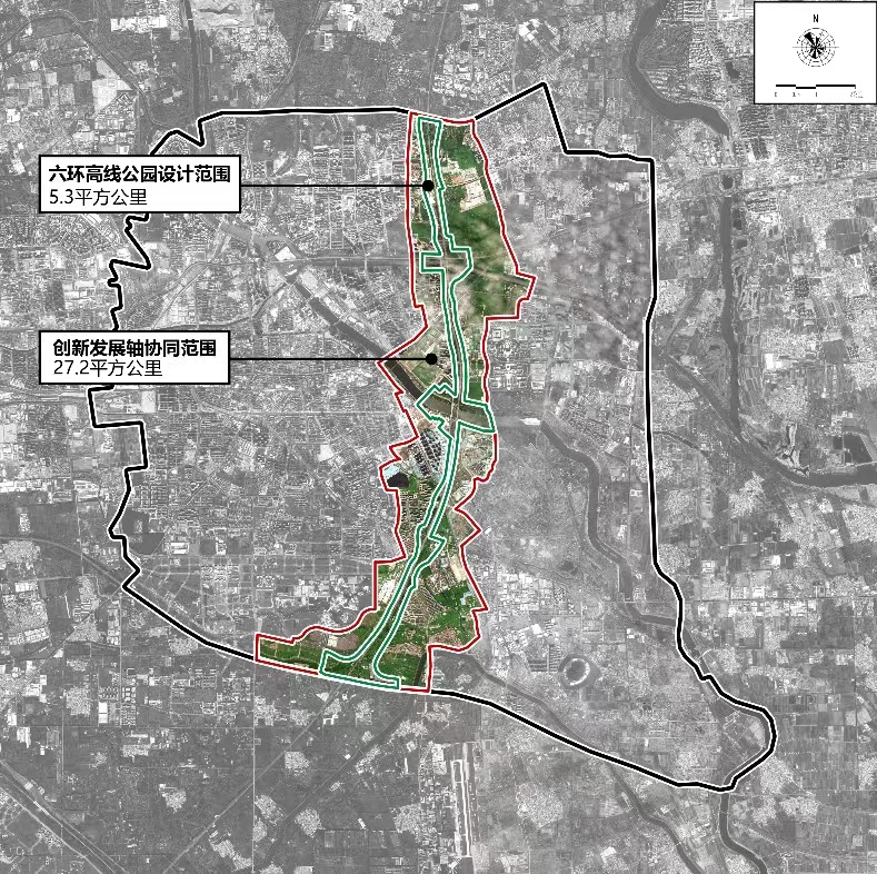 其可以打造若干条自相邻组团直达六环高线公园的鱼骨状城市活力廊道,实现周边景观和城市生活融为一体。