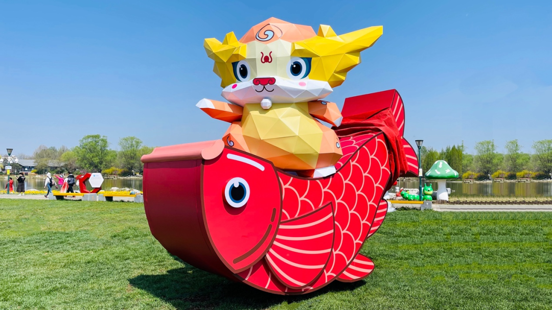 头顶蓝天,脚踏锦鲤——身高3米,象征“吉祥、平安、行大运”的大运河平安瑞兽在鲜花港瑞云坪首次亮相。作为今年北京郁金香文化节鲜花港展区的一大亮点,“顺义印象”主题活动携国潮户外装置展和“风物雅集”文创市集震撼来袭,将本届郁金香文化节的气氛推向了高潮!