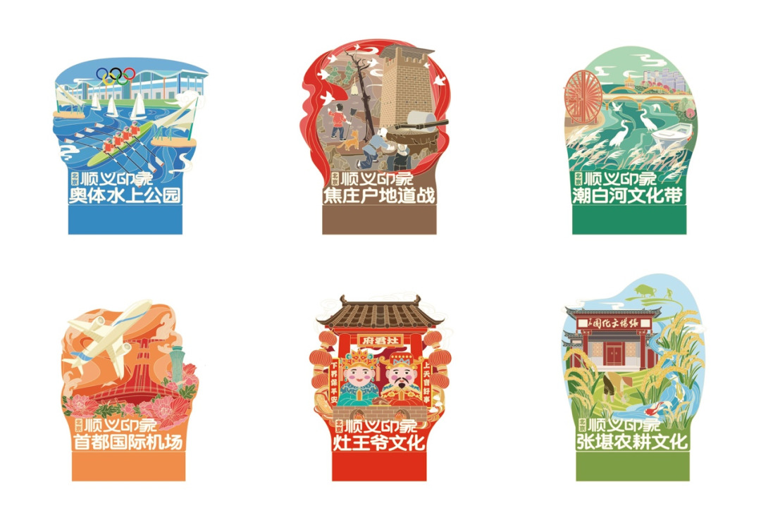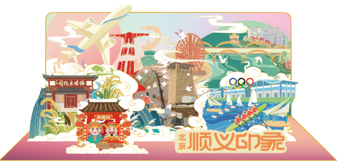 包含首都国际机场、奥林匹克水上公园、大运河文化带潮白河段、张堪农耕文化园、焦庄户地道战红色文化和张镇灶王爷民俗文化共计六个立体装置。