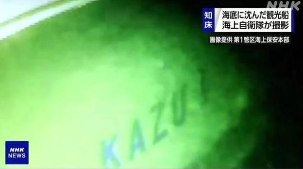 日本海上保安厅和海上自卫队4月30日使用水下摄像机观察沉船,发现客舱门为打开状态。由于当时海底视野差、水流急,没有进入船内调查。视今后天气状况,搜寻人员将使用水下摄像机通过客舱门进入船内调查,以确认船内是否有遇难者。