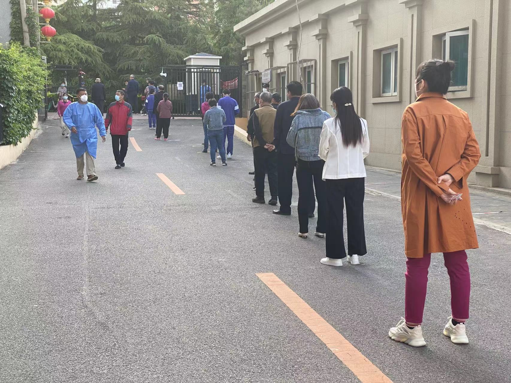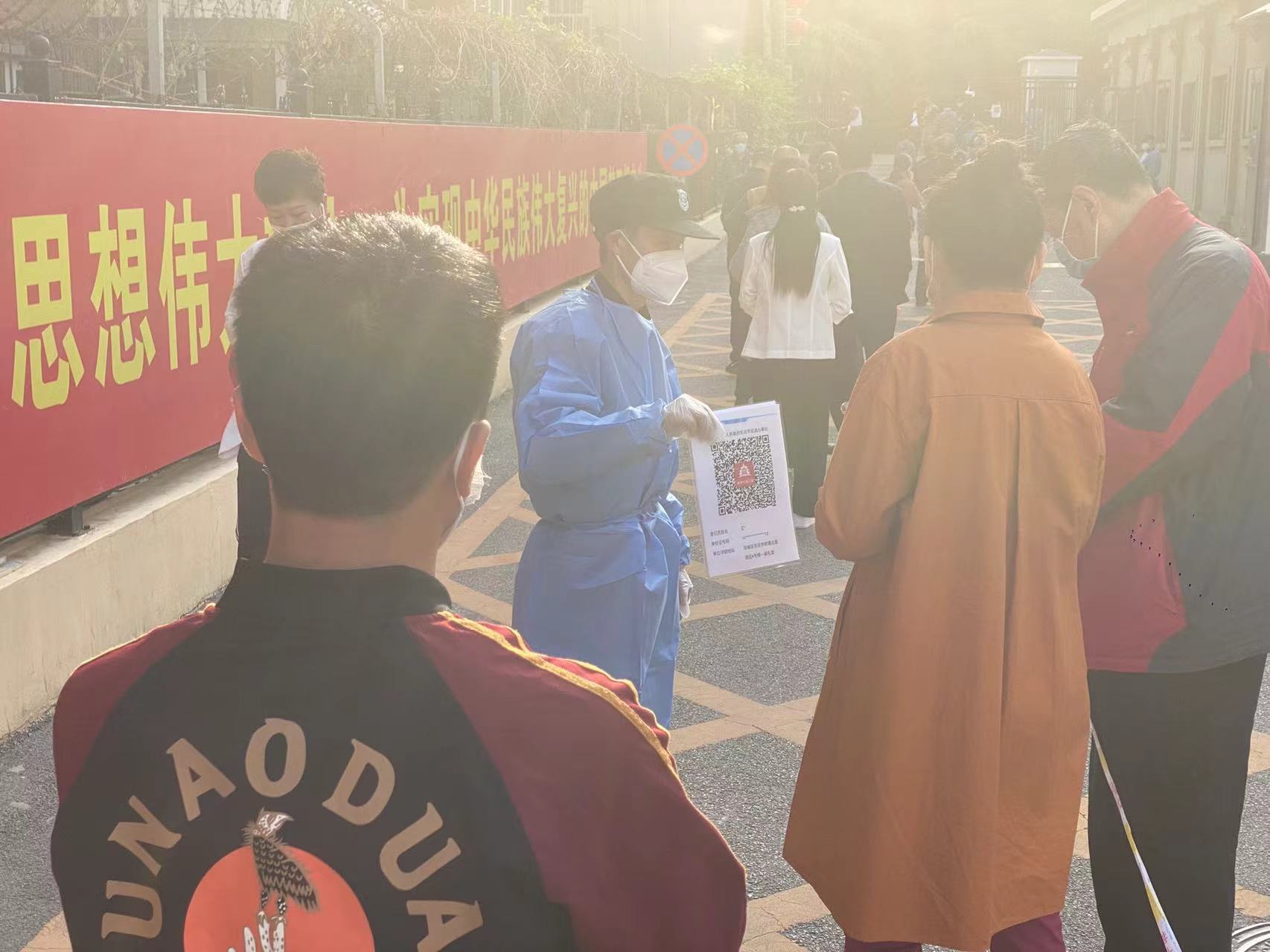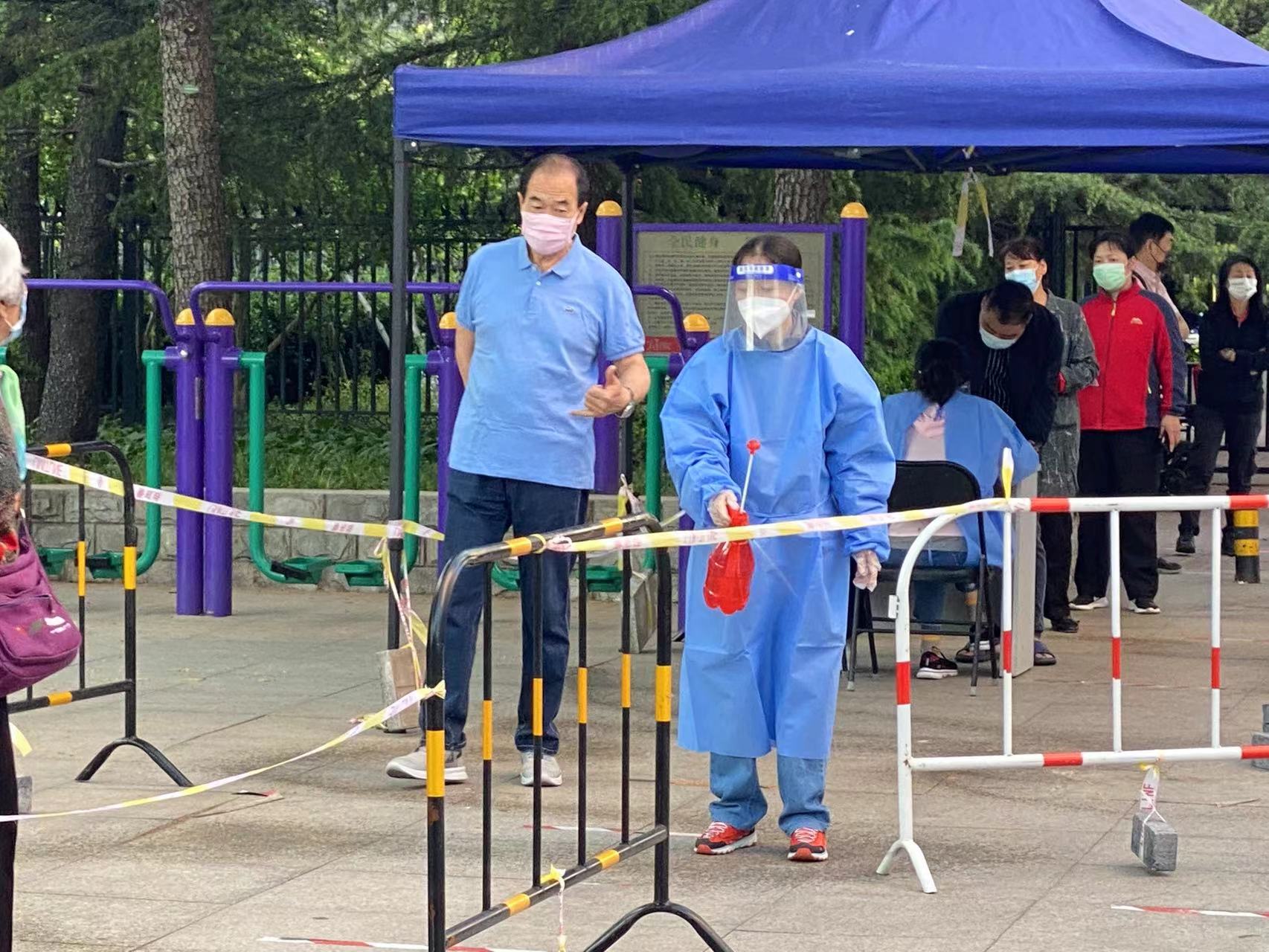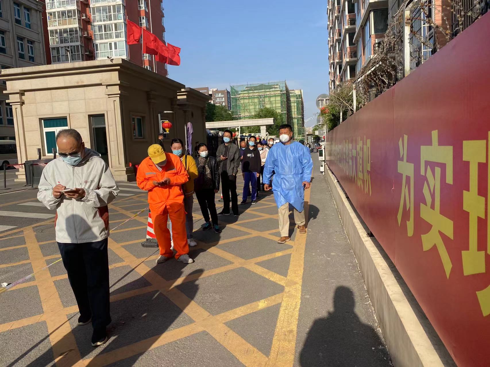 现场 | 东城区东花市街道居民一早排队做核酸
