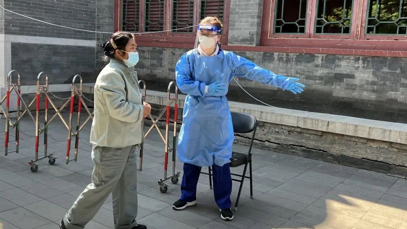 建国门街道纪工委监察组对核酸检测点现场排队、扫码测温和信息录入等情况进行监督检查。