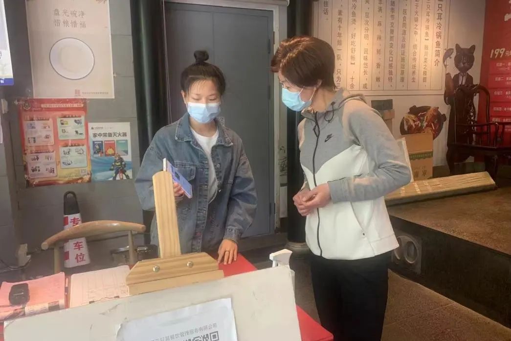 和平里街道社区纪委书记对辖区“七小”门店疫情防控情况进行监督检查。