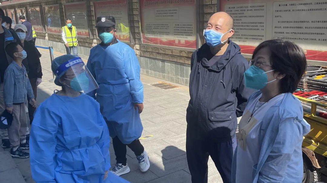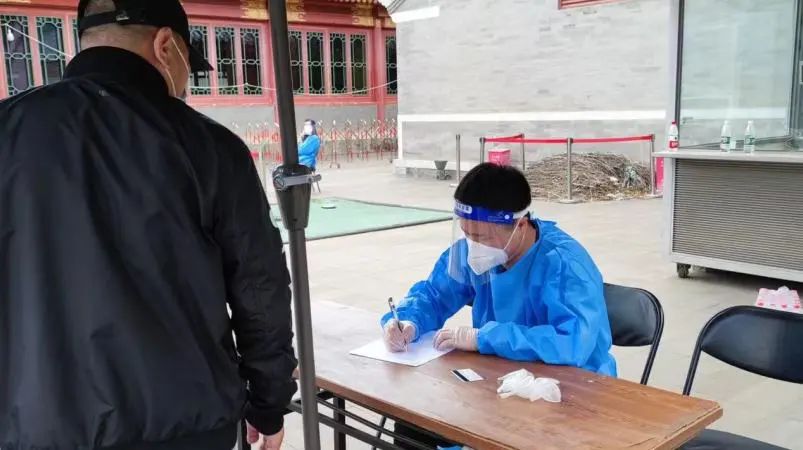 驻区人力资源社会保障局纪检监察组到天坛街道核酸检测点检查下沉干部支援情况,到天坛体育中心检查疫情防控工作。