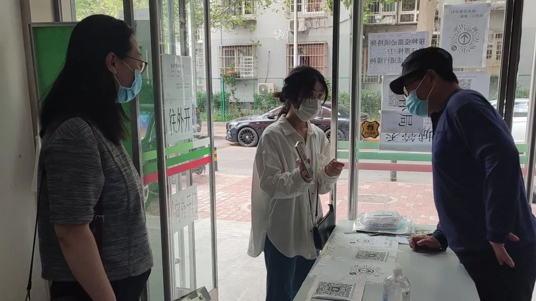 东直门街道纪工委监察组检查辖区“七小”门店和楼宇出入口疫情防控措施落实情况。