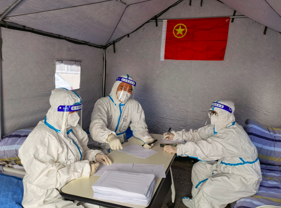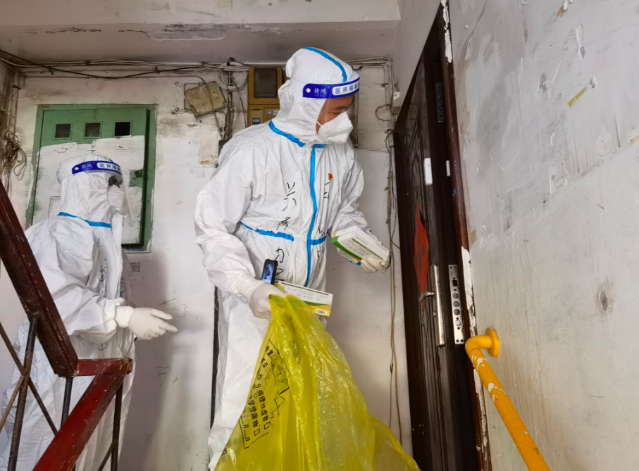 “阿姨您上次核酸结果出了,是阴性。”“家里物资够吗?需不需要下次给您带点儿什么。”“天热了,您也注意身体。”每一次上门核酸,对白明畅来说都是跟居民打交道的契机:上一次门、办多件事儿,临走再把垃圾拎一拎。“勤沟通,心更安”的工作方式,让他24小时腿不停、话不断。