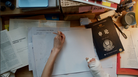 也正因此,《笃定》真正讲述的,正是一个青年最具普遍意义的追梦故事。它的开头并非宏大的场面,而是考场上答题的沙沙声与女主角紧张的呼吸。细心的观众们随后发现,女主因手臂受伤只能以左手答题而焦虑不已,心理距离很快便与之拉近。