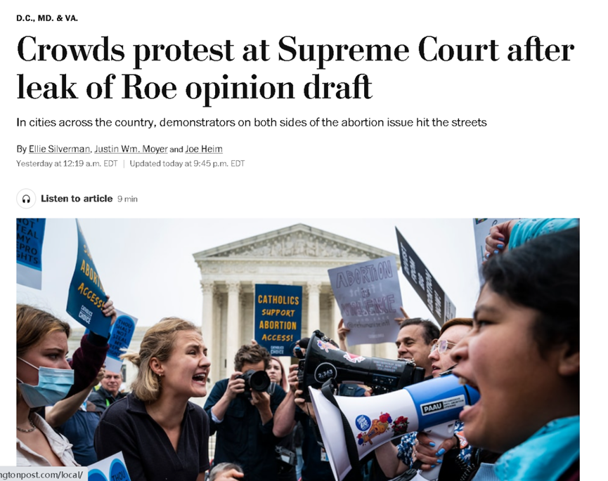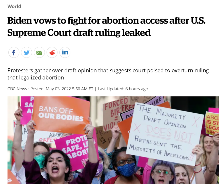 当天,美国“政治”新闻网(Politico)突然爆出了一个从美国最高法院内部传出的重磅消息:在美国最高法院的9名终身制大法官中,有一名持保守派立场的大法官认为,1973年的那个美国宪法保护女性堕胎权裁定“有问题”,而且是有严重的“错误”,应该被推翻。他的这个观点还得到了其他4名保守派大法官的支持。