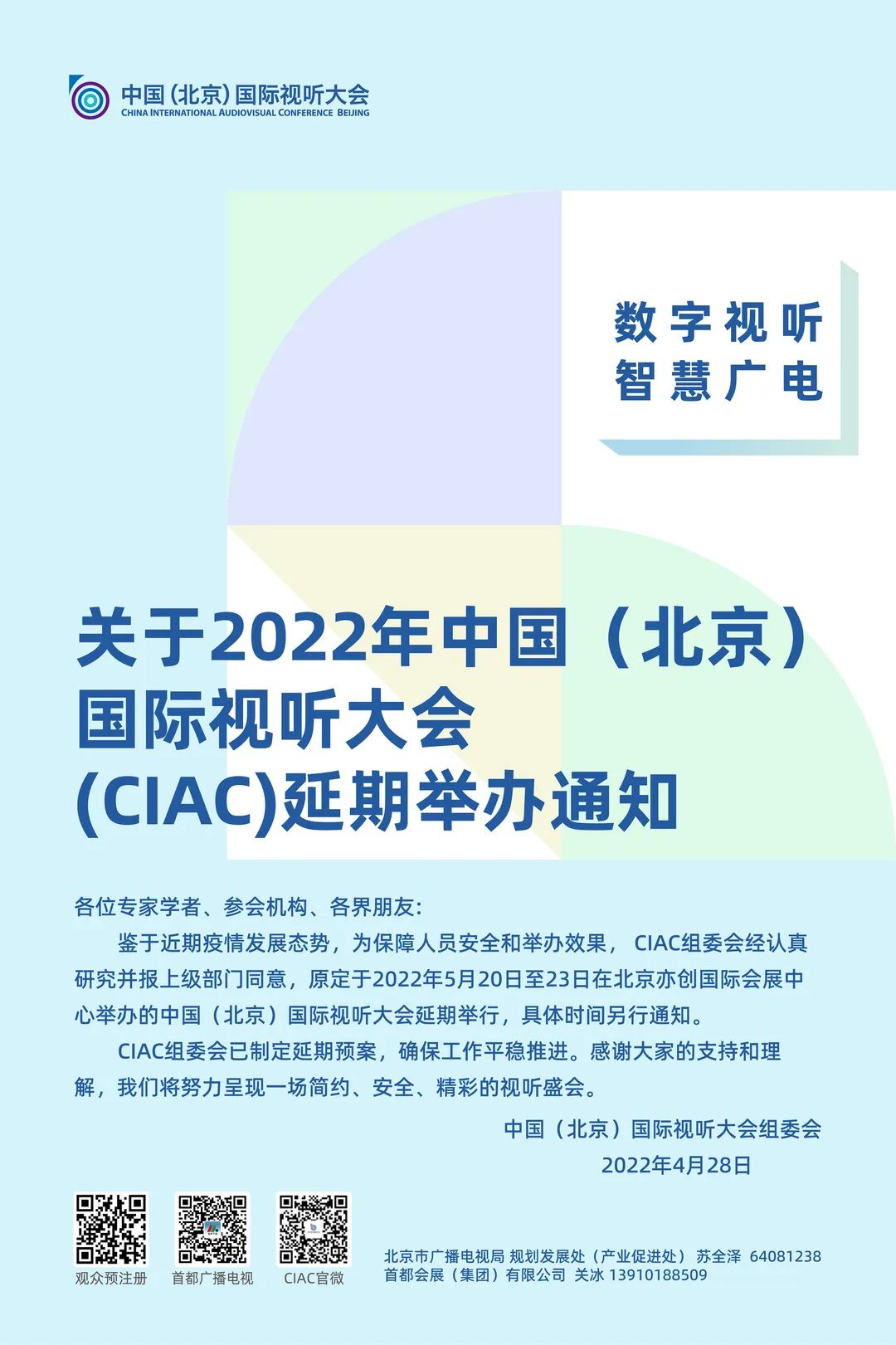 关于2022年中国(北京)国际视听大会(CIAC)延期举办的通知