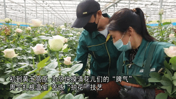 西北黄土高原气候干燥、昼夜温差大,为了让“娇气”的玫瑰能够在西北黄土高原上落地生根,周宁和同事们一起从头学起,通过逐步摸索和一次次尝试,将荒凉的黄土地变成了万亩花田。