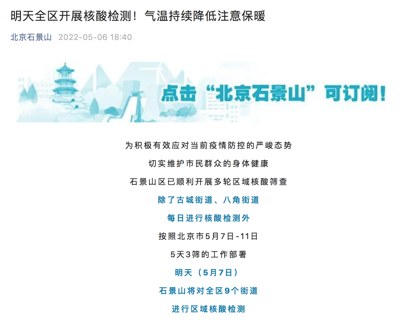 石景山区已顺利开展多轮区域核酸筛查