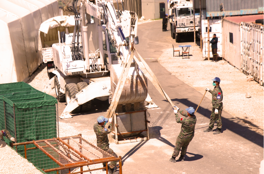 据悉,此次施工区域位于“蓝线”(黎巴嫩和以色列临时停火的边界线)附近的尼泊尔营,原有防空掩体经长期雨水冲刷和风吹日晒,已出现严重变形,存在较大安全隐患。为保证维和友军人员安全,新建防空掩体的任务迫在眉睫。受领任务后,分队立即派出专业力量现地勘察,研判安全风险,制定施工方案,确保施工任务有序稳步推进。