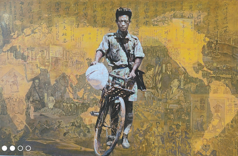 我画了父亲扛着车在东南亚跋涉的画面,因为父亲曾对我说:“暹罗(泰国)的路很坏,有三分之二的路程是我乘着车子,有三分之一的路程被车子骑着我。”