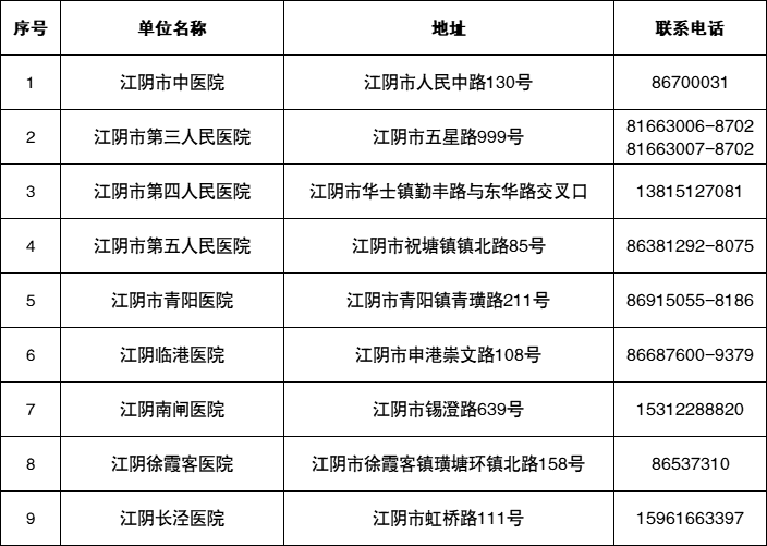 附:江阴开设发热门诊医疗机构名单(2022年5月5日更新)