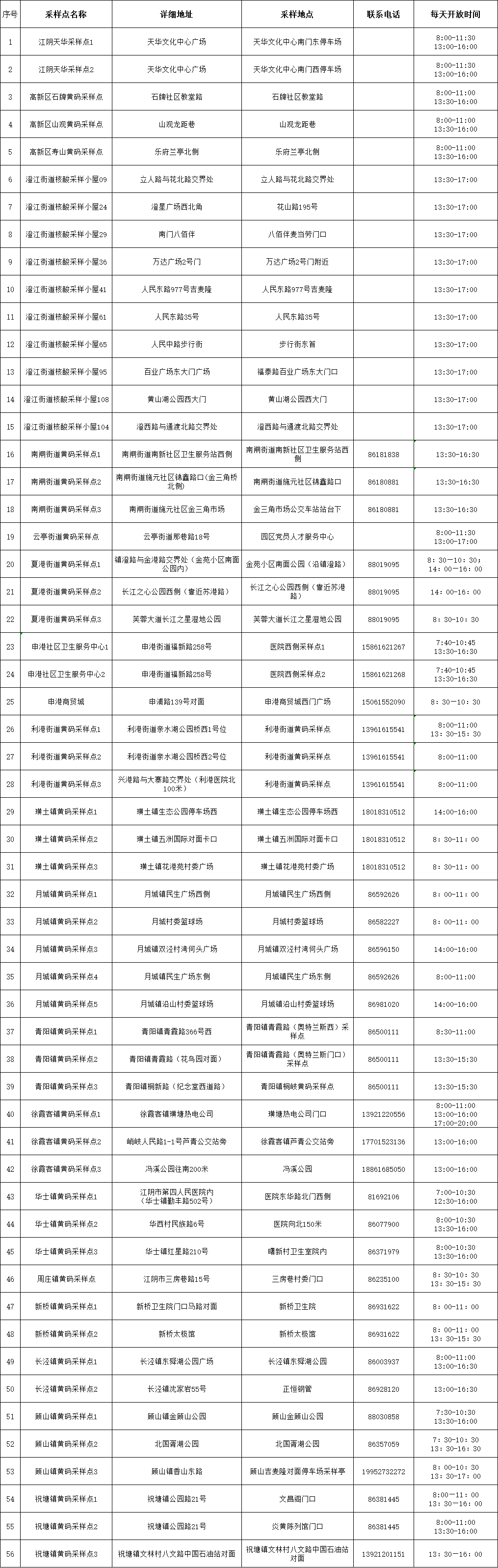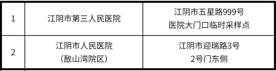 附:江阴市“黄码”人员核酸检测专用采样点(2022年5月6日更新)