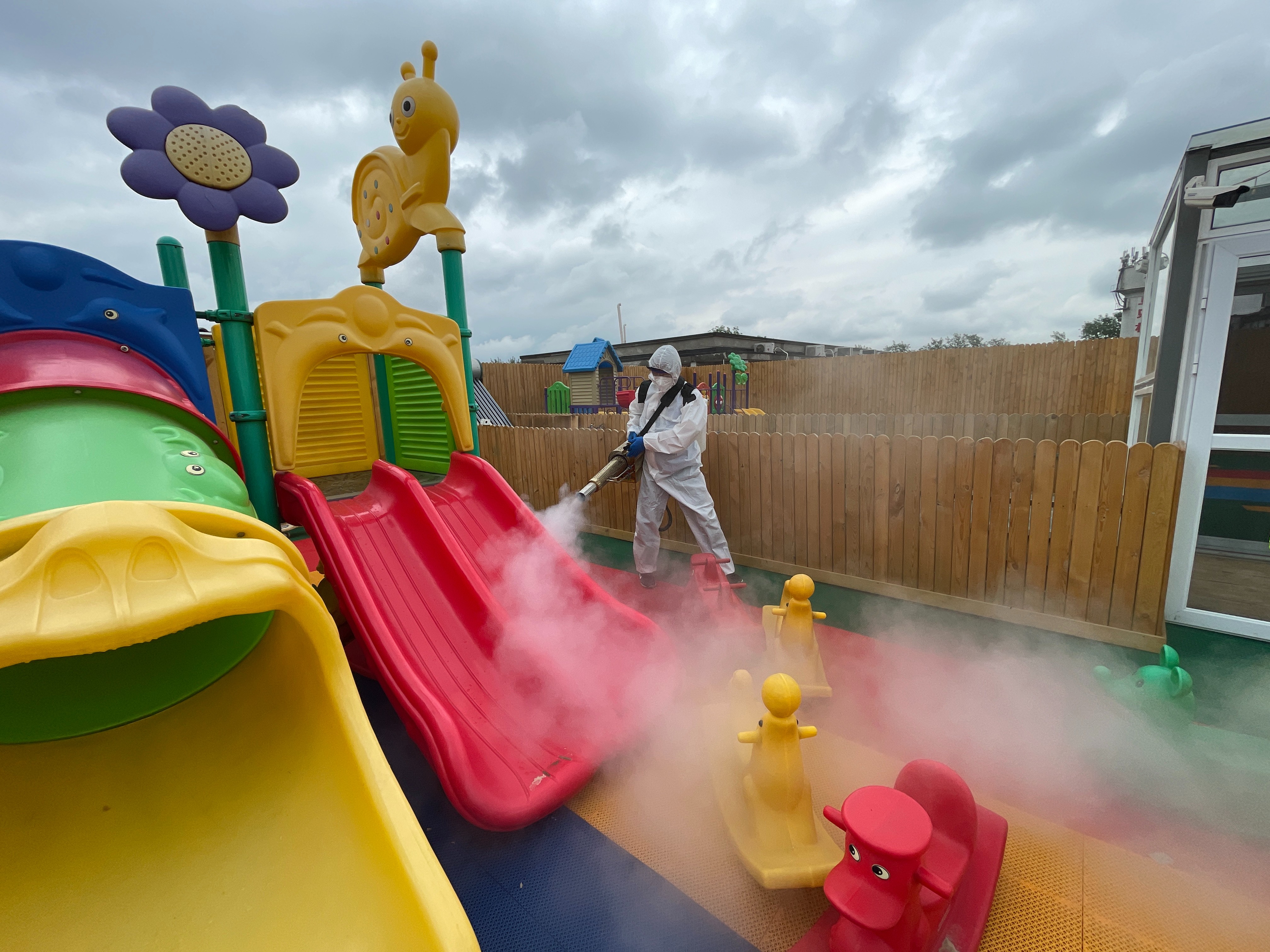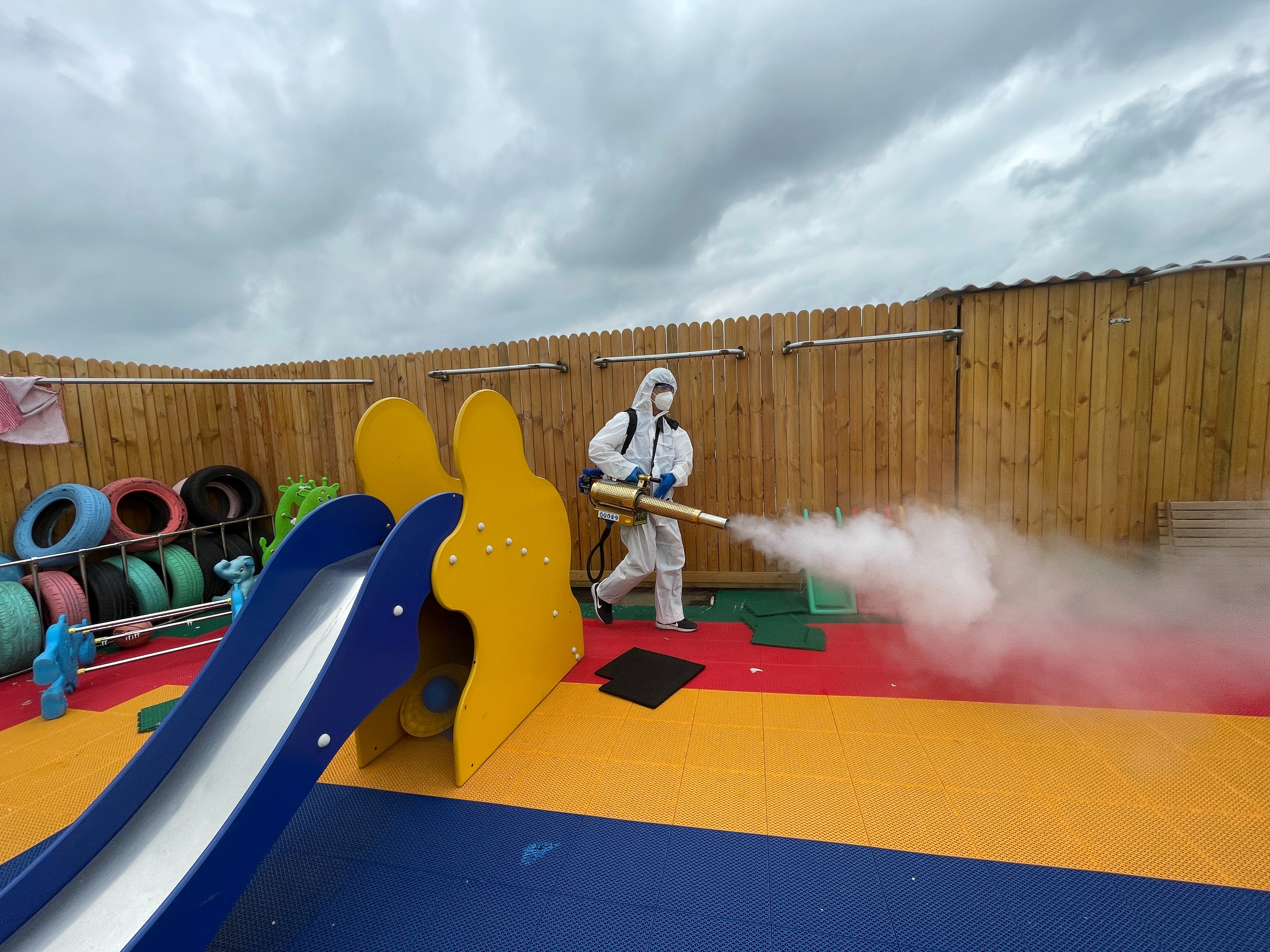 包括亲亲宝贝幼儿园在内,金果果幼儿园马驹桥校区、贝特尔幼儿园米拉分园、贝特尔幼儿园温馨校区、北京乐英博雅幼儿园、靛庄双语艺术幼儿园、星河幼儿园漷县分园以及幸福云朵幼儿园等8所幼儿园开展了此次消杀工作。