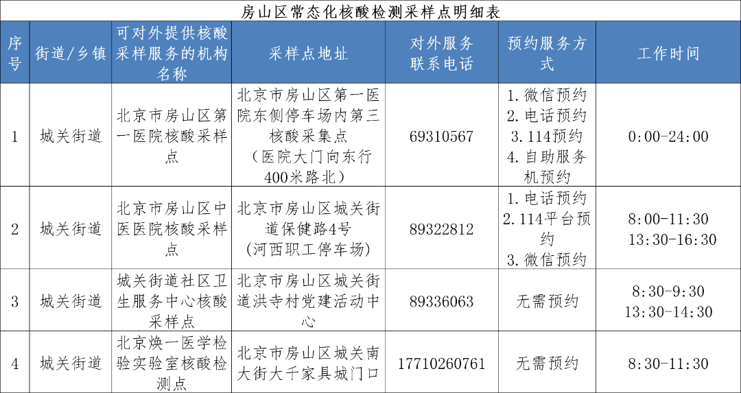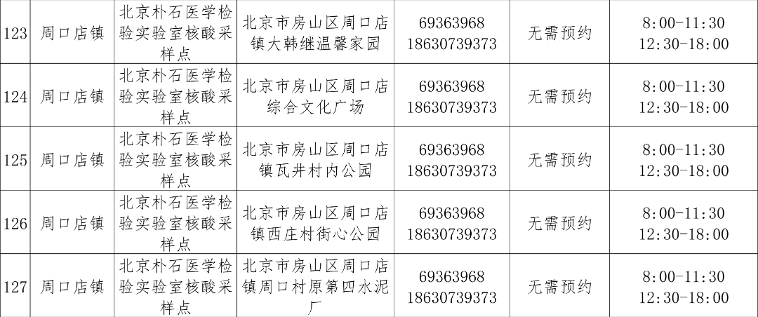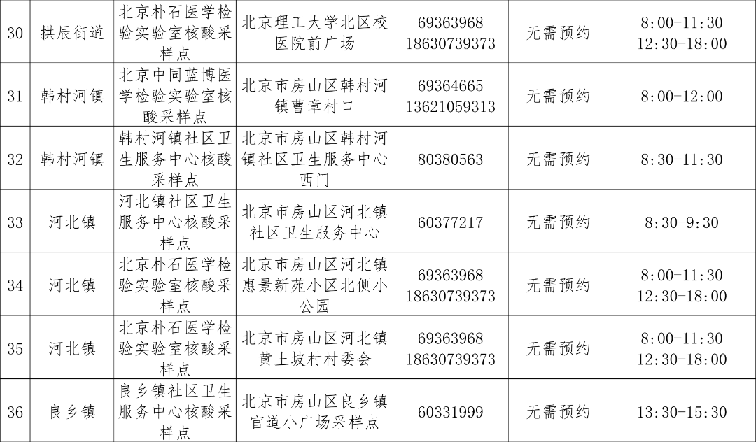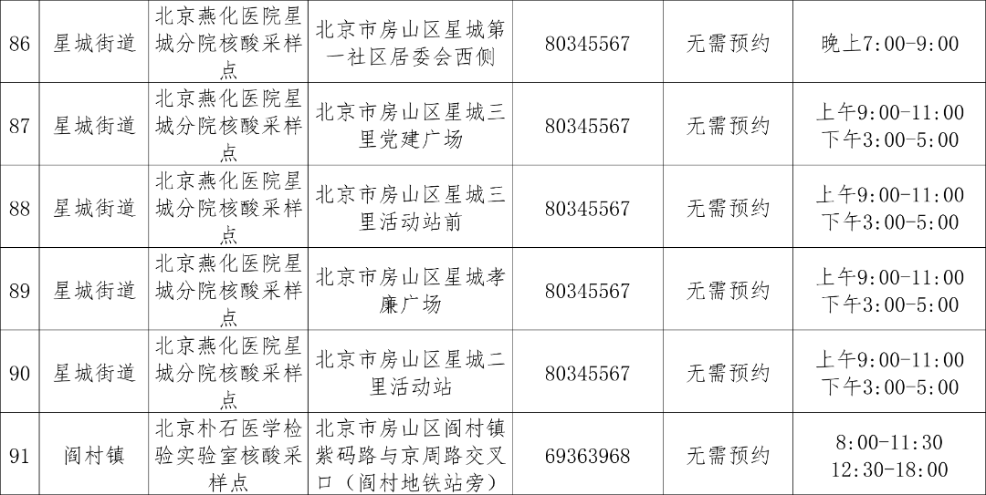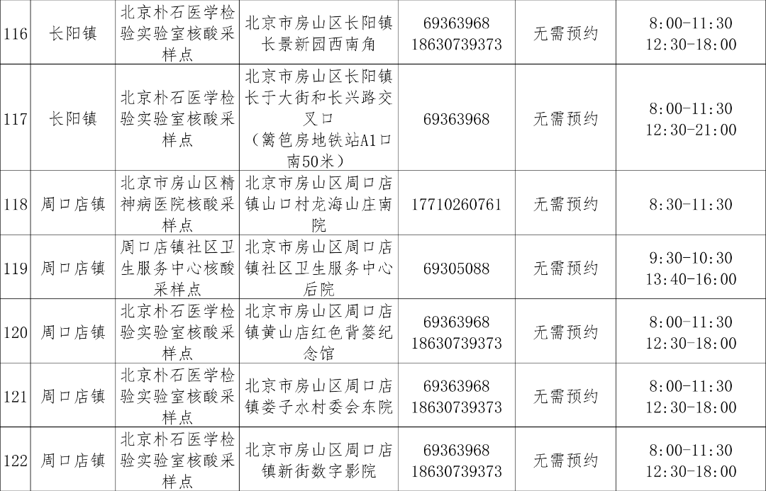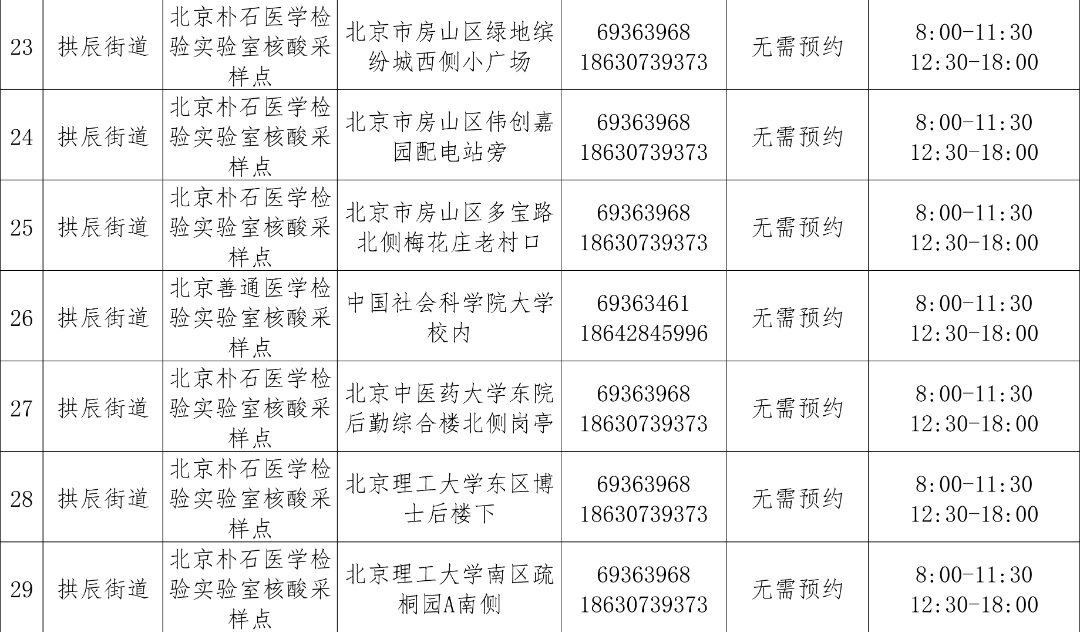 免费常态化核酸检测采样点