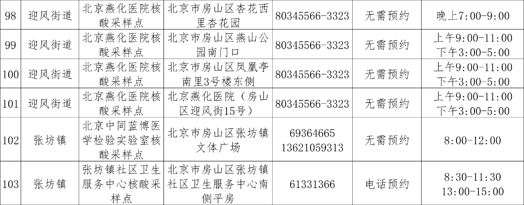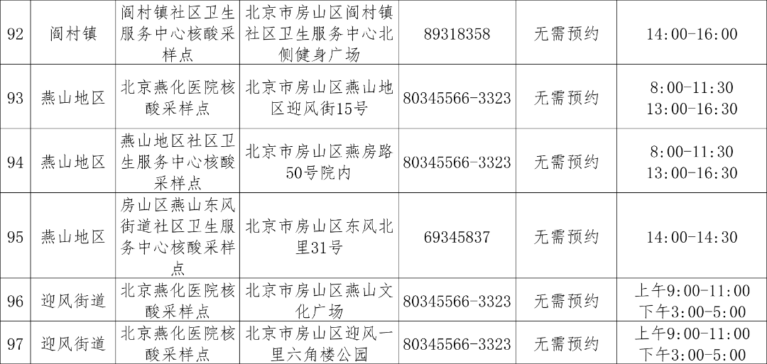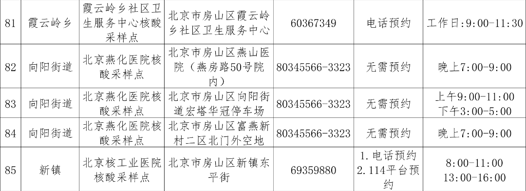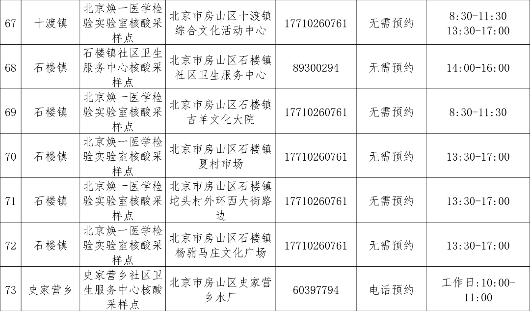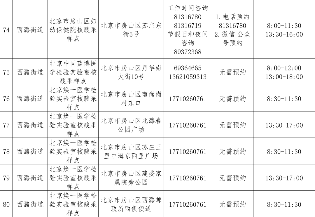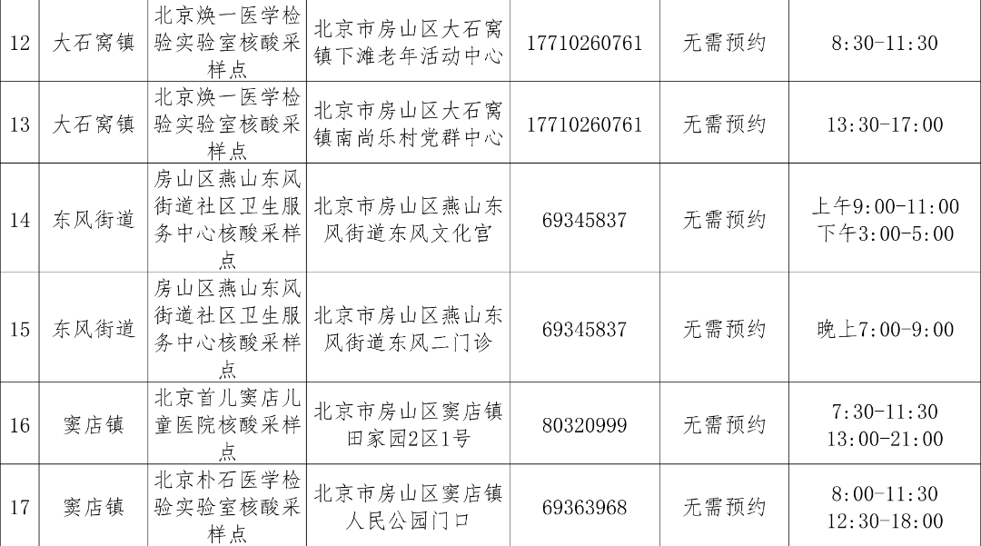 免费常态化核酸检测采样点