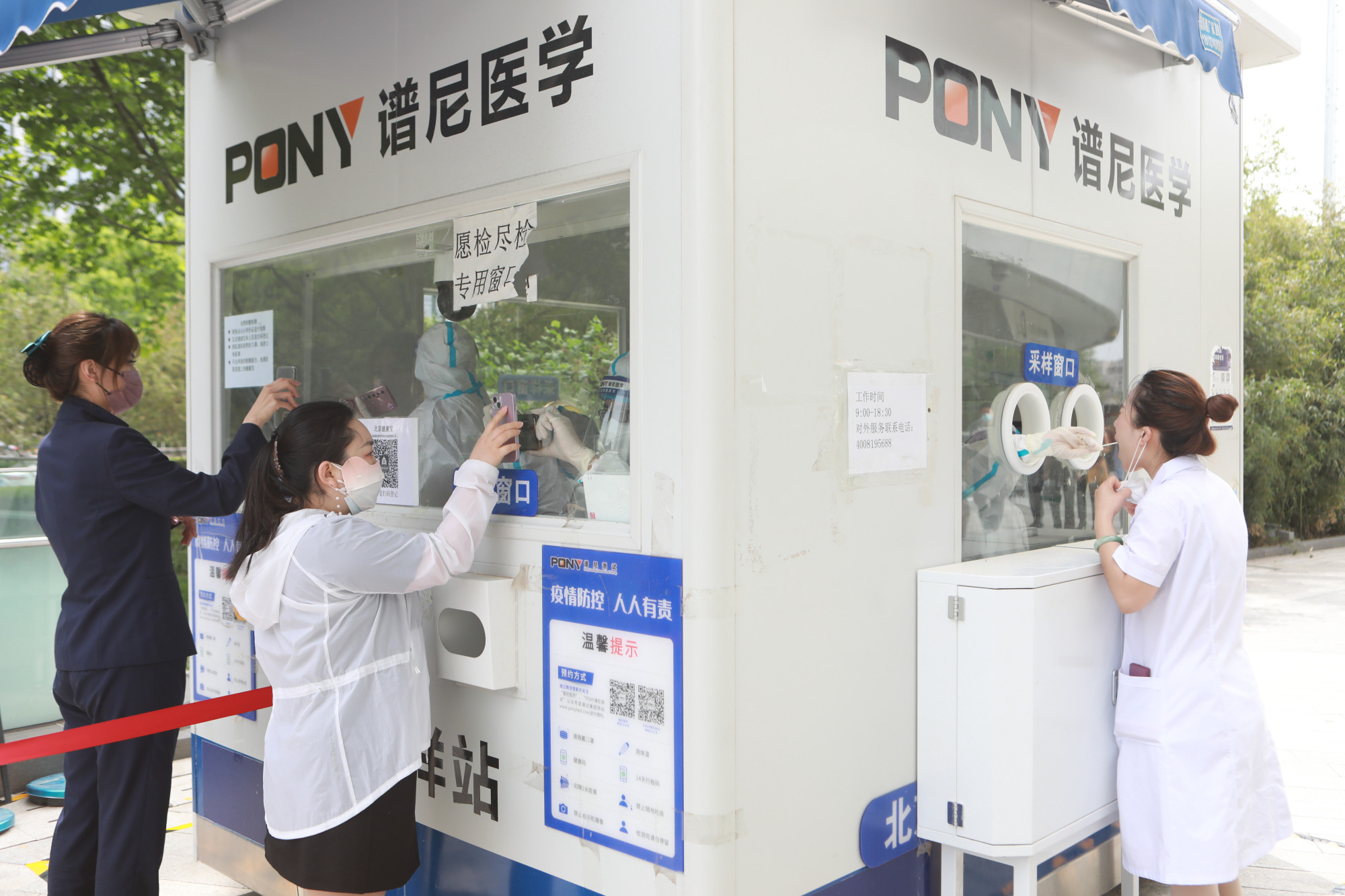 “请大家有序排队、采样……”5月9日下午,记者在北京市第六医院西门的核酸检测点看到,一站式服务让市民无须进入院区就能完成检测。“根据现场实时情况,我们会通过增加采样点来解决排队现象,高峰期可同时开辟三处检测点。”据北京市第六医院门诊部副主任金启明介绍,自开展常态化核酸检测以来,北京市第六医院核酸检测门诊24小时不间断服务。面对剧增的核酸检测需求量,医院增设了核酸检测窗口;设弹窗必检人员检测窗口为北京健康宝弹窗人员提供服务;多部门联动,及时增加工作人员,补充采样力量。