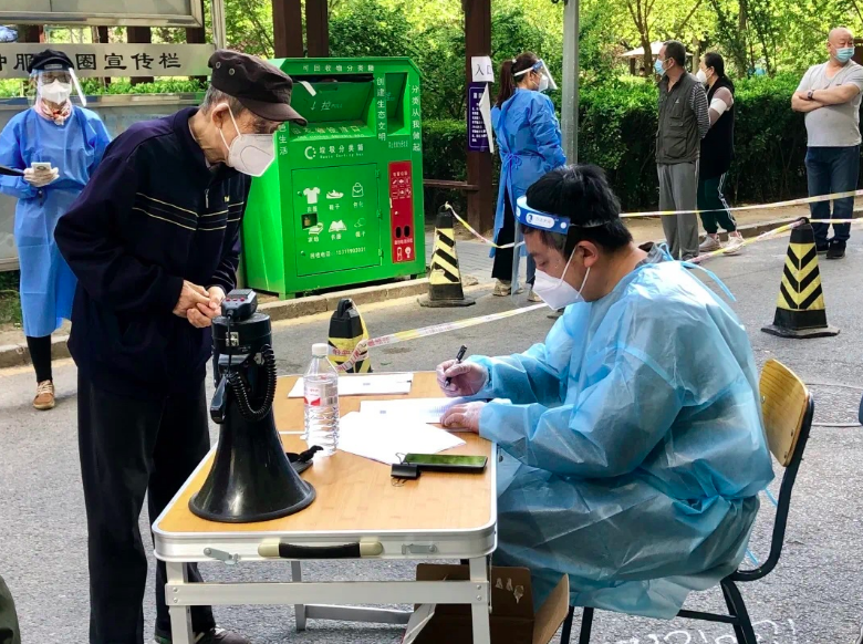 志愿者们分两个组,年龄大的维持秩序,年轻人精力更旺盛些,组成“喊楼组”。采样时间不但细化到每栋居民楼,就连每层楼也要分开做,避免聚集。一层楼做完,再喊下一层楼,“喊楼的时候我们不用扩音喇叭,怕惊到老人、病人。”