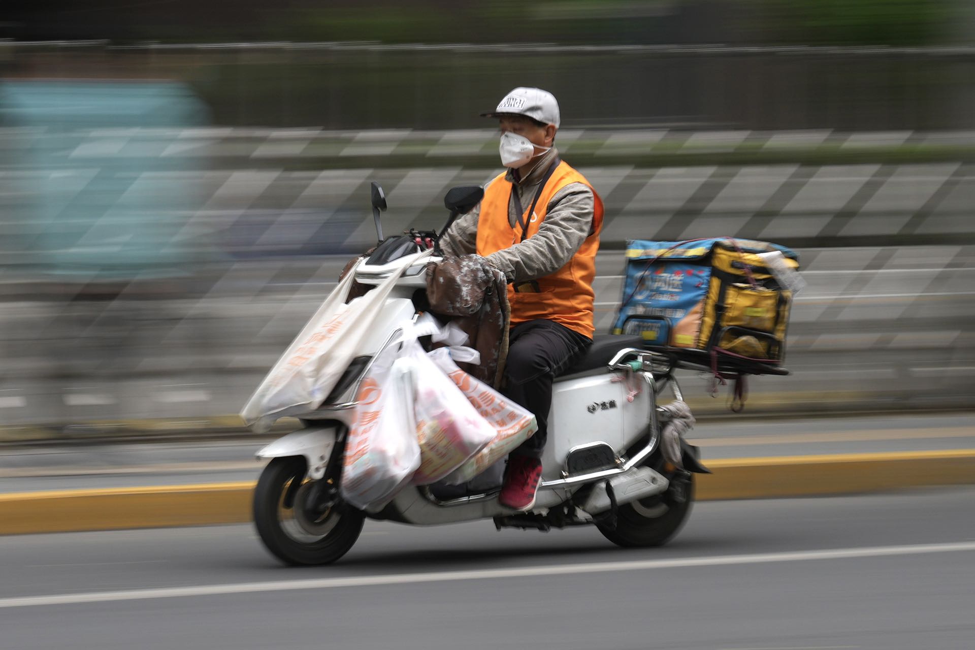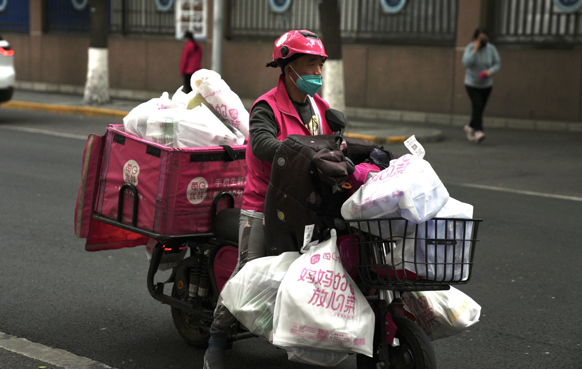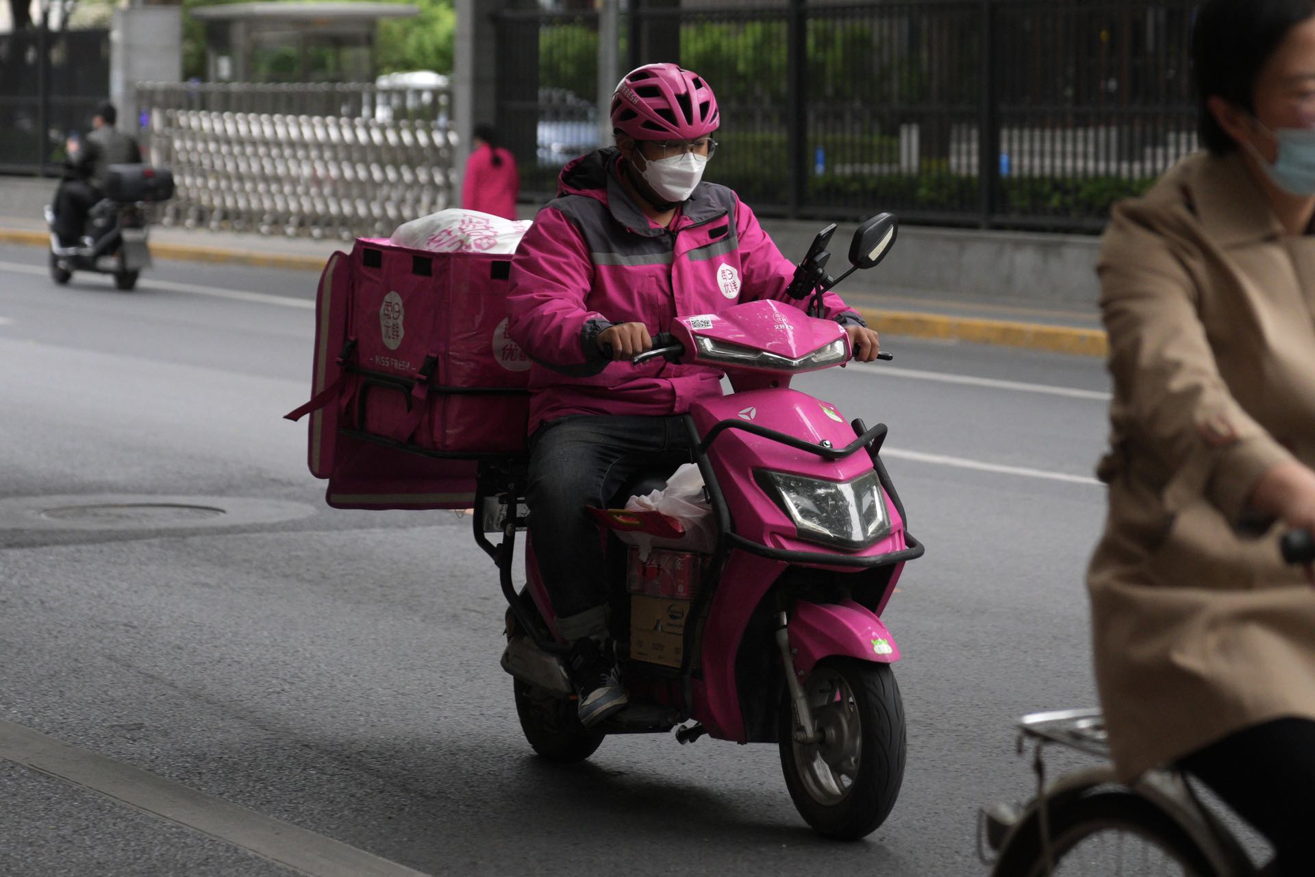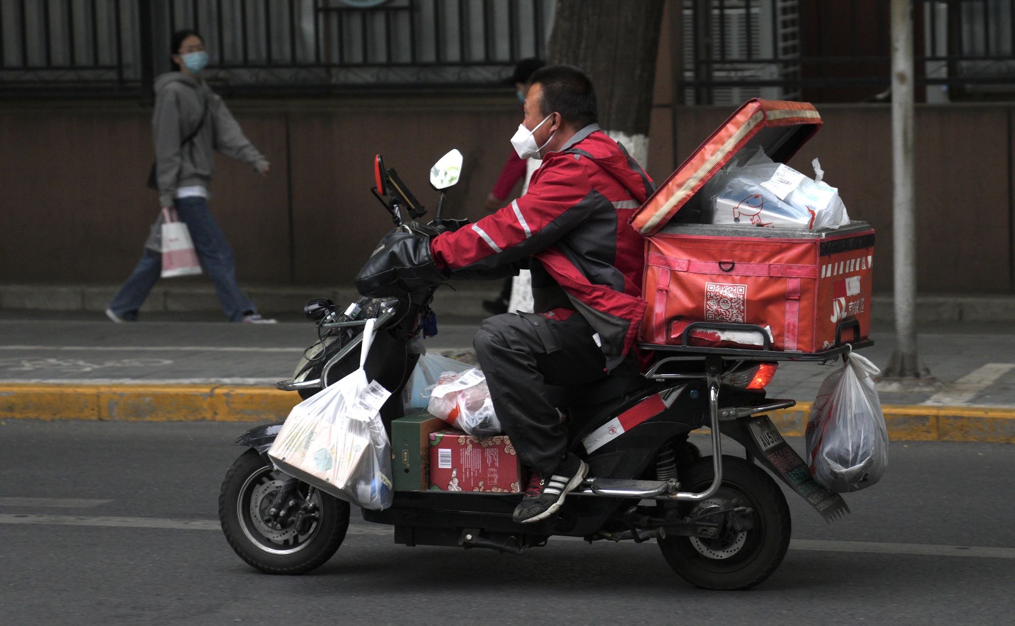 外卖快递配送不停 5月12日下午,外卖员、快递员辛勤的奔波在京城的大街上配送市民订购生活物资。北京民生保障物资货源充足,外卖快递配送不停,请市民理性购物不需要紧张。