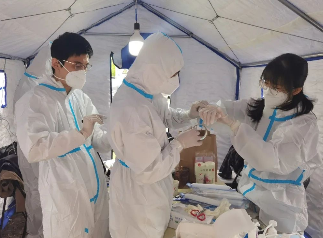 在集结地,他见到了此行的10位同事。他们绝大部分是90后,最小的刚满20岁。还没来得及相互介绍,疫情防控指挥部便下达了第一道指令:“同志们,现在最紧要的任务是立即上门为居民做核酸,大家分组出发。”