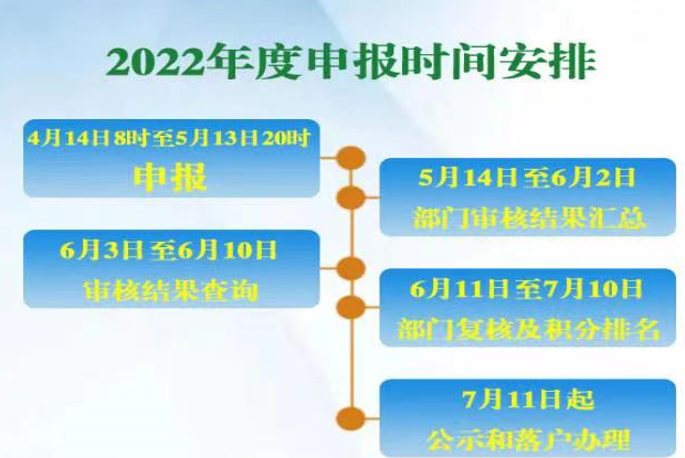 2022年北京市积分落户申报于4月14日启动。申报工作分五个阶段,申报期为30个自然日。