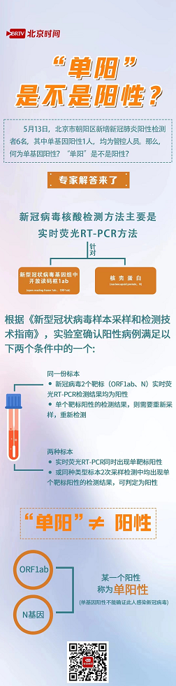 13日,朝阳区新增新冠肺炎阳性检测者6名,单基因阳性1人,均为管控人员。什么是单基因阳性?引起了许多人的追问,记者就此询问了呼吸与感染科专家。