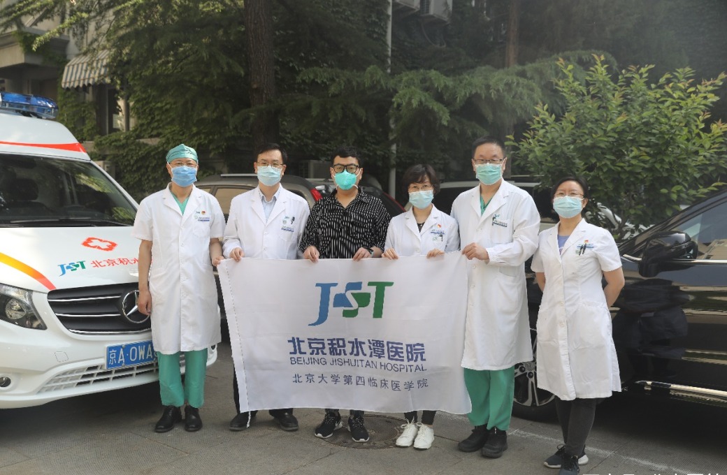 近日,北京积水潭医院副院长于洋、党委办公室主任王英、医务部主任鱼锋、麻醉科主任王庚、手麻党总支书记杨庆国送吴泽昊(左三)奔赴小汤山方舱医院。