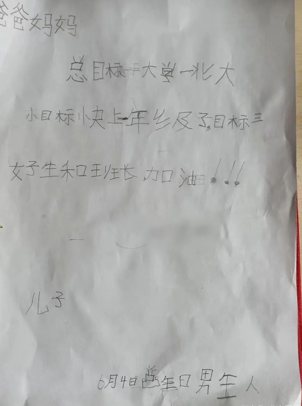 “我知道了,妈妈你的大目标是打倒小怪兽!那我悄悄告诉你我的大目标…… ”随即儿子发过来一张图片,看完上面的内容,她深深感到儿子长大了。