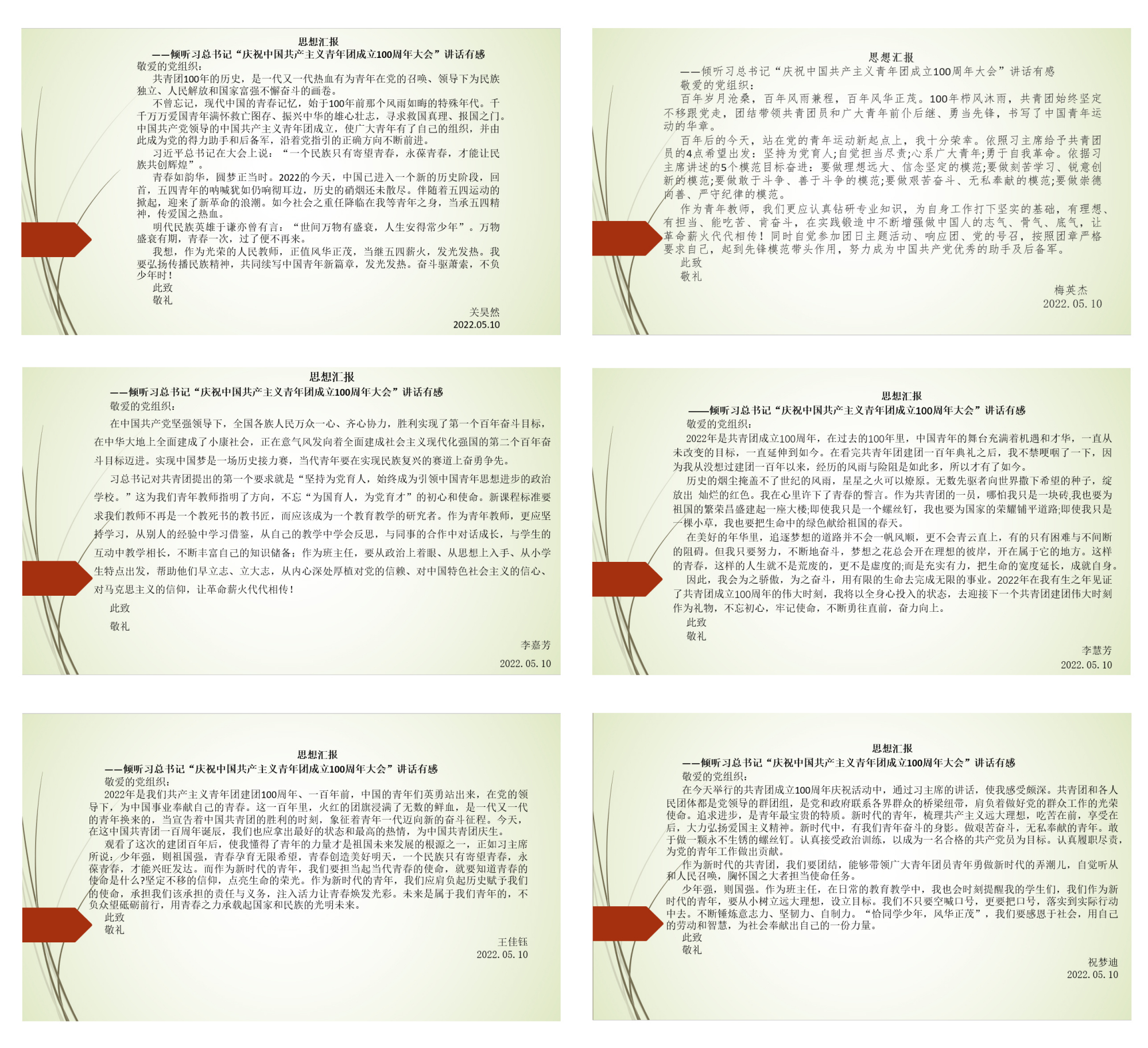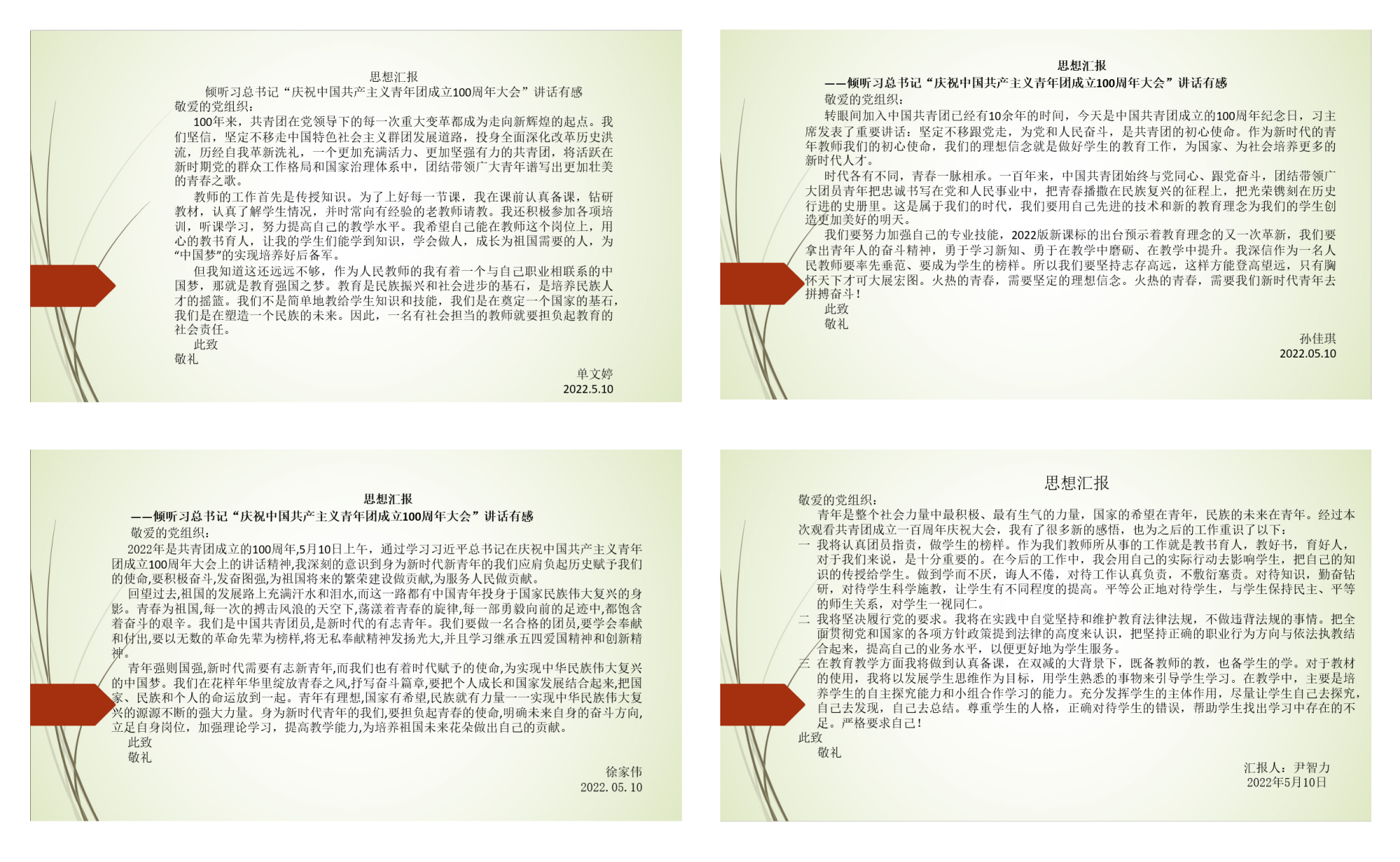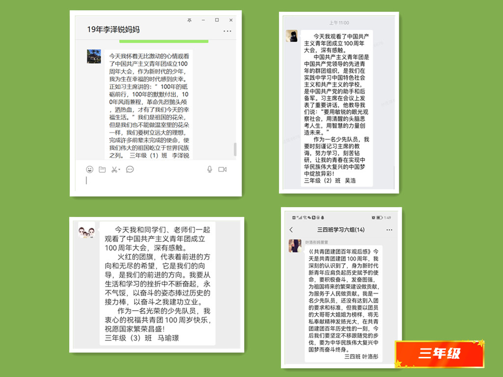 直播结束后,教工团支部的每一位队员激情满怀,以思想汇报的形式表达了内心真实的感受。各中队队员也通过线上不同形式展开热烈交流,彼此分享着学习后的体会。大家都表达着同一种心声:只要始终不渝坚持党的领导,就一定能为实现中华民族伟大复兴注入源源不断的青春力量!