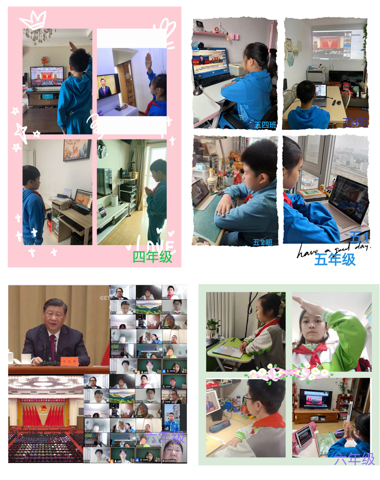 上午10时,全校师生守候在云端,通过网络视频共同收看了大会的直播。聆听总书记的讲话,回望百年共青团成长之路,广大青年在中国共产党的旗帜下,用奋斗和拼搏,创造了无愧于祖国、无愧于人民、无愧于时代的光辉业绩,赢得了党和人民的高度赞誉,更加坚定了团员、队员跟党走的信心和决心。