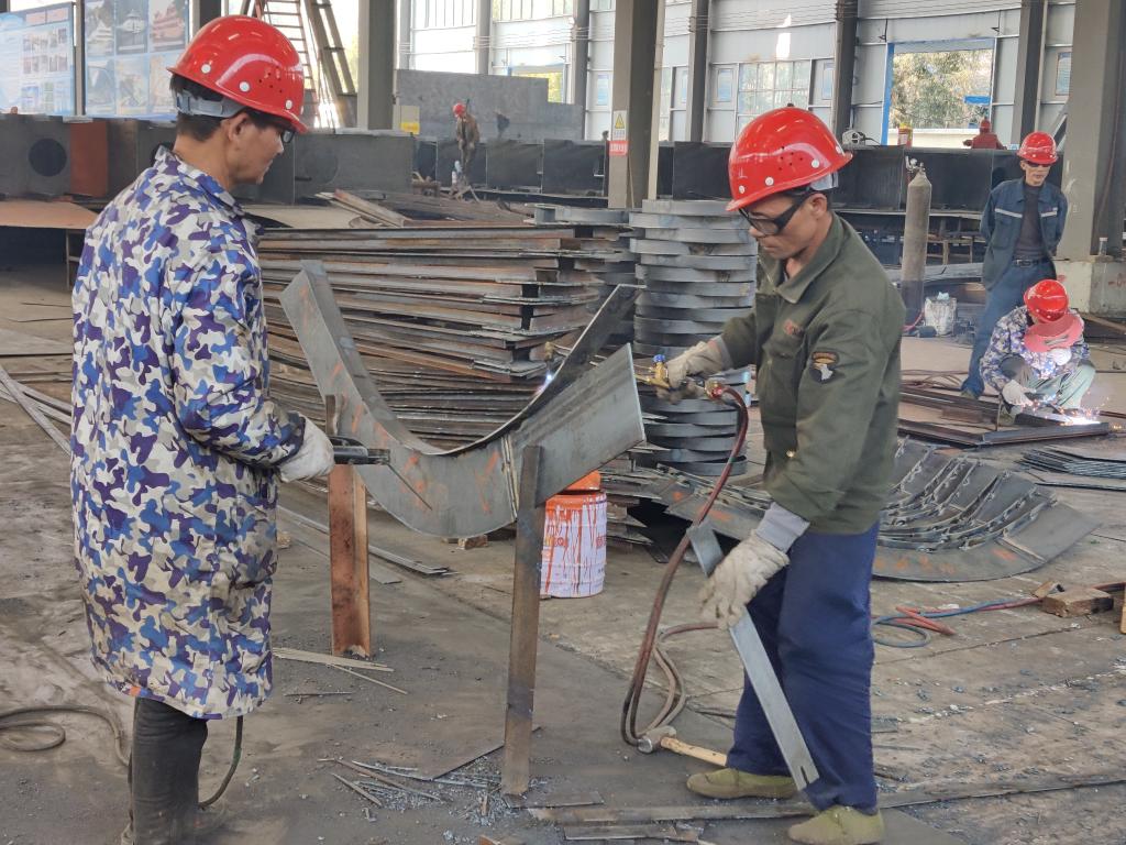 2022年3月11日,位于乌江下游的思南造船厂,工人们正在紧张工作。(新华社记者李黔渝摄)