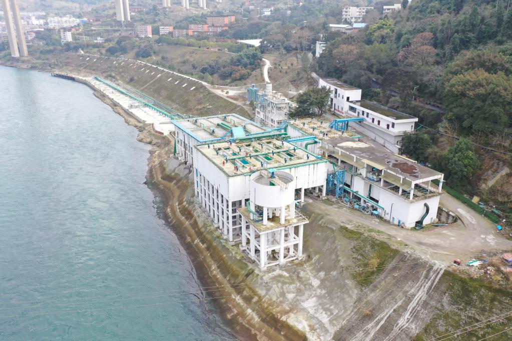 位于贵州遵义市播州区乌江镇乌江边上的34号泉眼上方已建起大型污水处理装置。(林泓泉2021年1月28日摄)