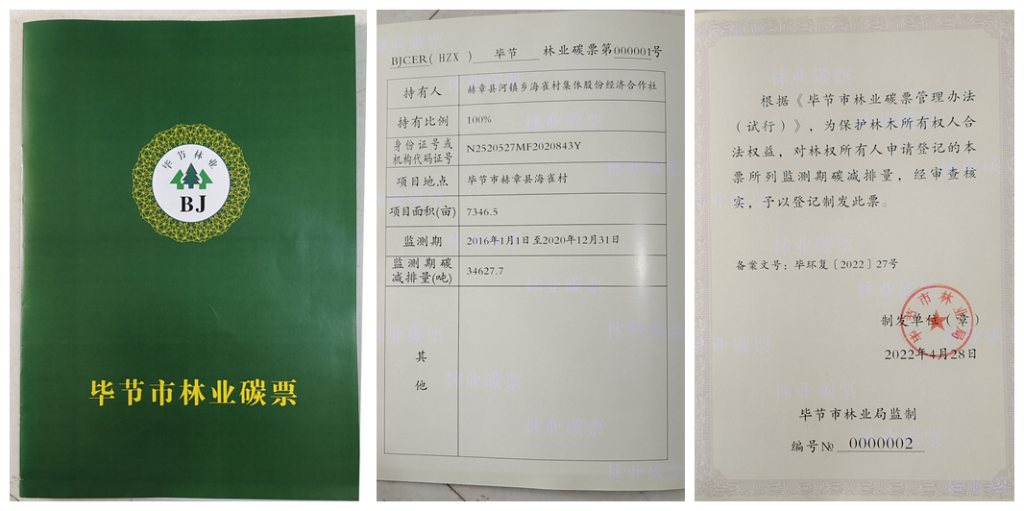 毕节市林业局为赫章县海雀村颁发的林业碳票。(赫章县委宣传部供图)