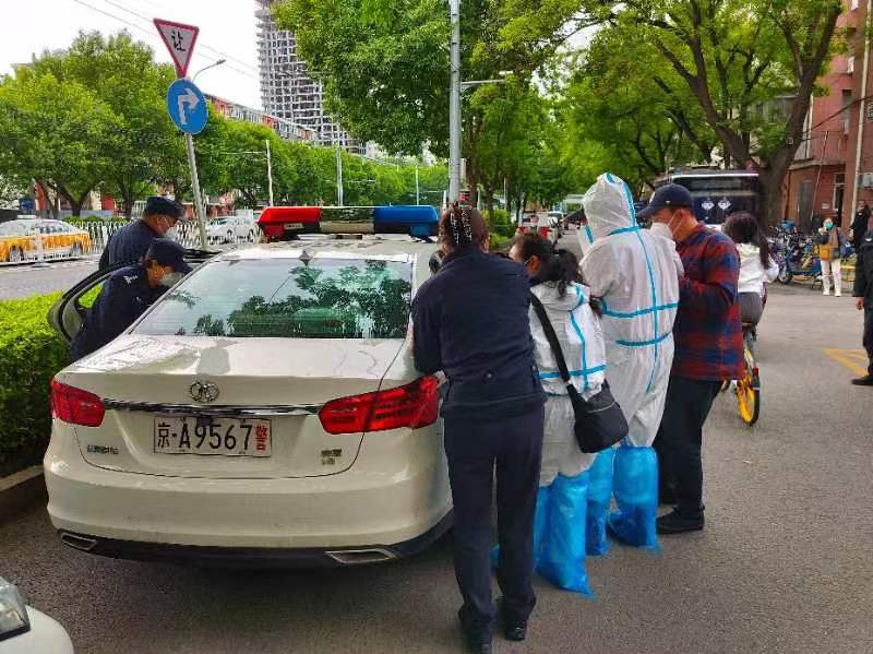 “情况不妙,不能再拖了!”出于职业判断,王迪随即向正在社区值守的德外派出所所长刘炟汇报了老人的情况。经与疾控等部门紧急沟通,迅速综合研判,刘炟当机立断决定用警车护送老人前往附近医院。王迪连同街道和社区工作人员迅速为老人穿上防护服,众人合力将其抬上等待在社区门外的警车。