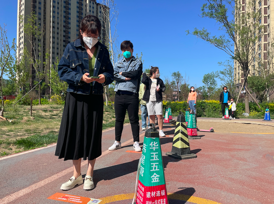 近日,在潞城镇的核酸采样点位,参加核酸筛查的村民不仅做到了有序排队,保持两米距离,还不断低头看向脚下的“两米线”,并时不时拿出手机扫码。走近一看,原来大家是在学习垃圾分类知识,并参加线上答题活动。